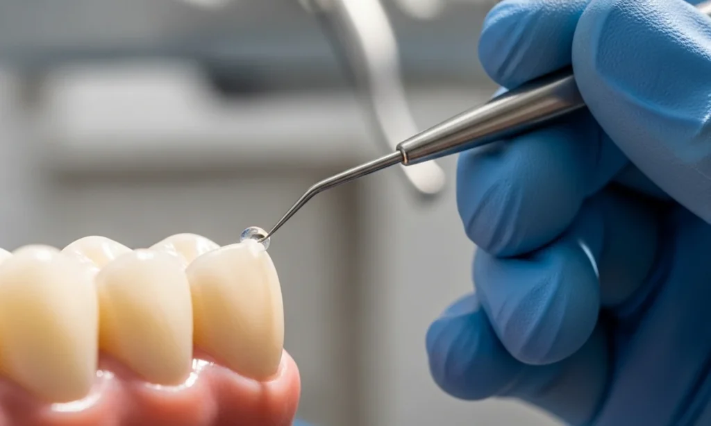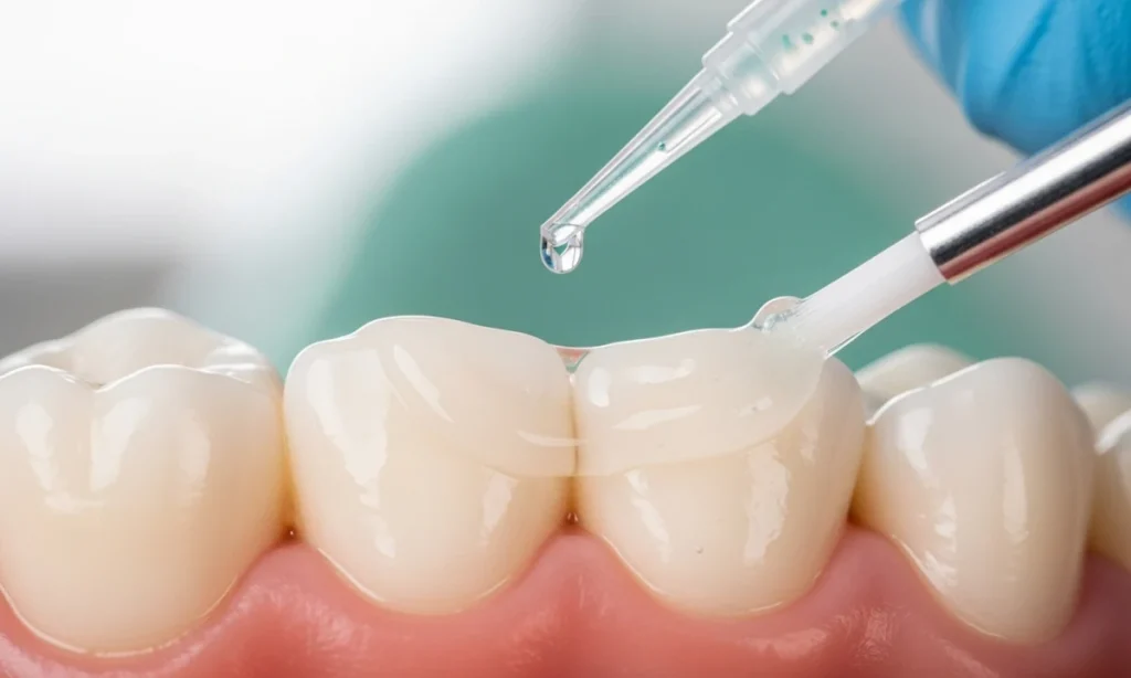 During the Phoenix curodont repair , the dentist gently cleans the tooth and keeps it dry. The Curodont Repair Fluoride Plus gel is applied to the weak area. Inside the tooth, a peptide scaffold forms and pulls in calcium, phosphate, and fluoride. Over time, the enamel hardens and becomes strong again.